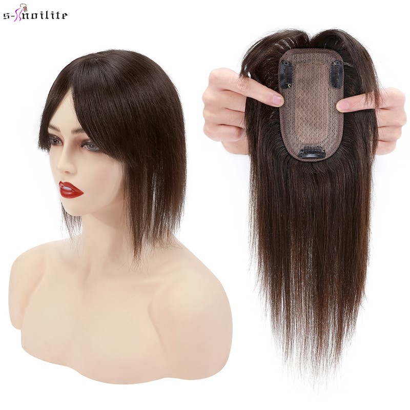 S-Noilte 7X13Cm Cheveux Toppers Cheveux Humains Soie Base Cilp Perruques Clip Dans Les Extensions De 33G-53G Morceau De 10 Pouces Natutal Cheveux