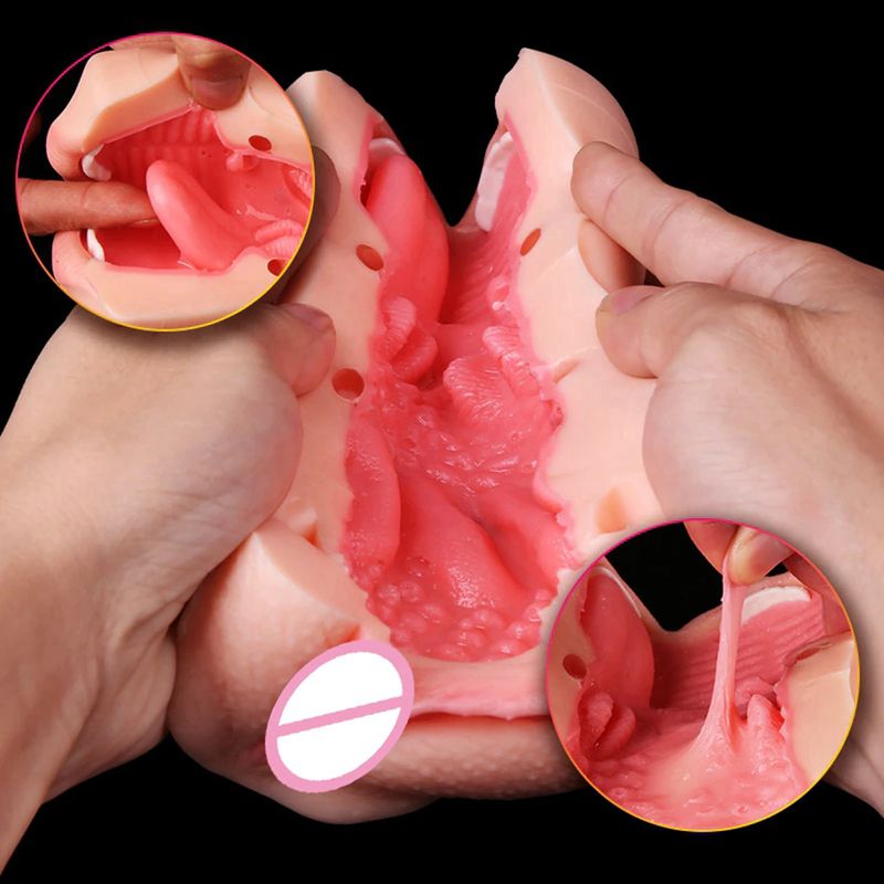 Jouet Sexuel Pour Hommes, Vrai Vagin Réaliste, Bouche Orale Gorge Profonde Artificielle Avec Langue Dents En Silicone, Chatte De Poche Masculine Masturbateur