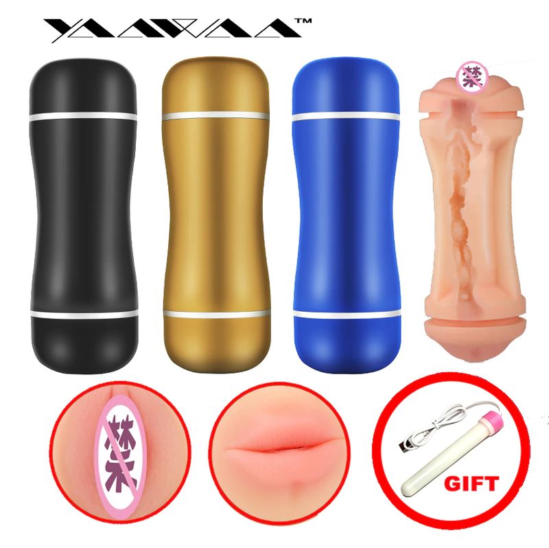 Masturbateur en Silicone pour hommes, vagin et bouche artificiels 3D, gorge profonde avec langue, dents, jouets sexuels