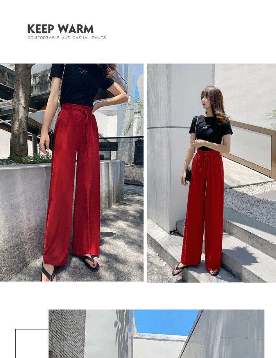 Pantalon Décontracté En Soie Glacée Pour Femme, Taille Haute, Longueur Cheville Doux Et Confortable, Nouvelle Collection Été Le plus récent