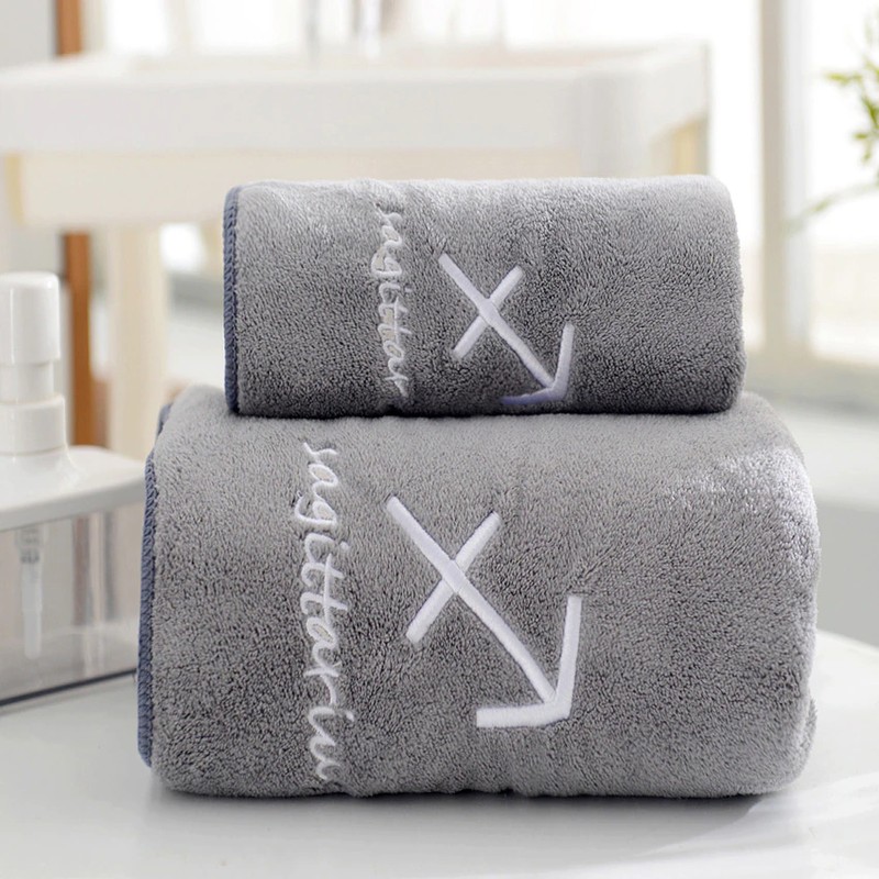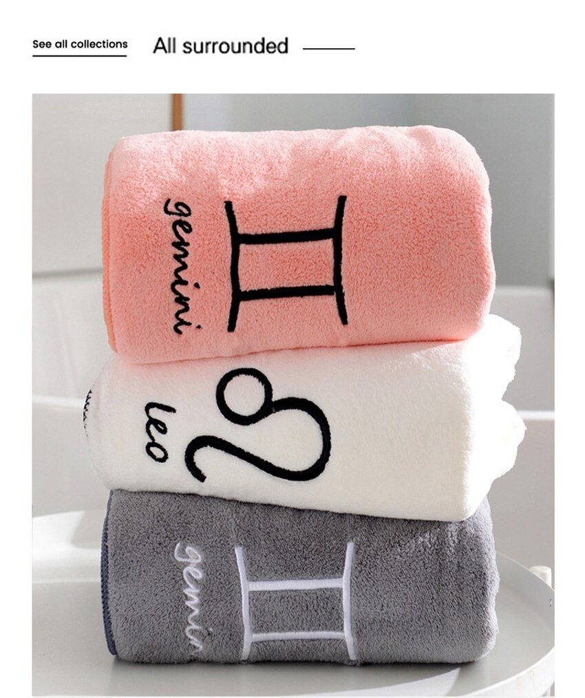 Serviette De Bain Pour Le Visage, Ensemble De 12 Lettres De Constellation Brodées, Grande Absorption D'Eau Forte Pour Adultes