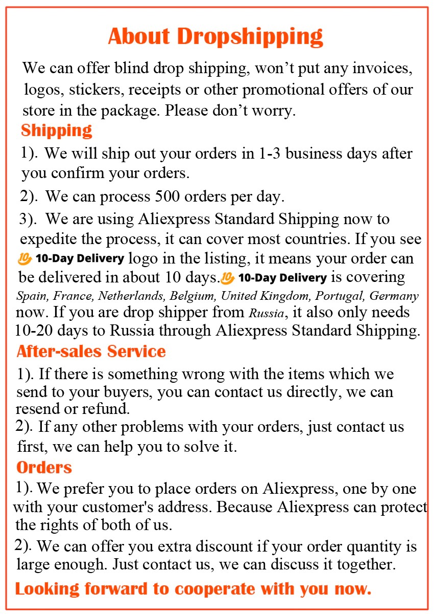 2. Veuillez nous envoyer un mail avant vos commentaires négatifs ou mauvais commentaires ou litige sur le site, nous ferons de notre mieux pour résoudre le problème dès que possible et vous rendre heureux de l'entreprise.