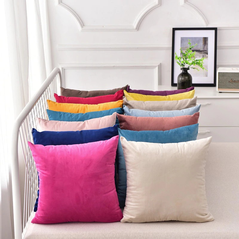 Housse De Coussin En Velours De Couleur Bonbon Unie, Pour La Décoration, Taie D'Oreiller Pour Mettre Sur Le Canapé, Dans La Voiture Et La Maison