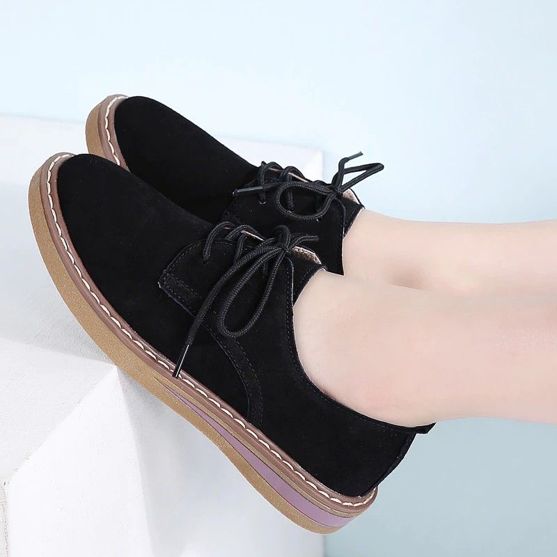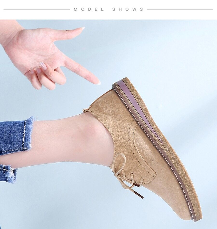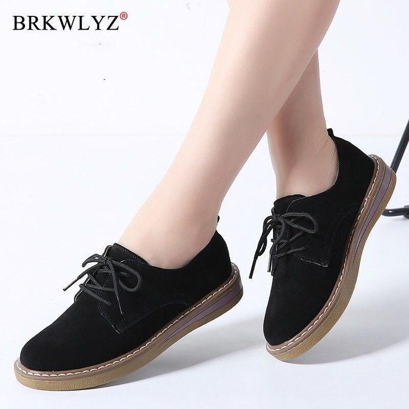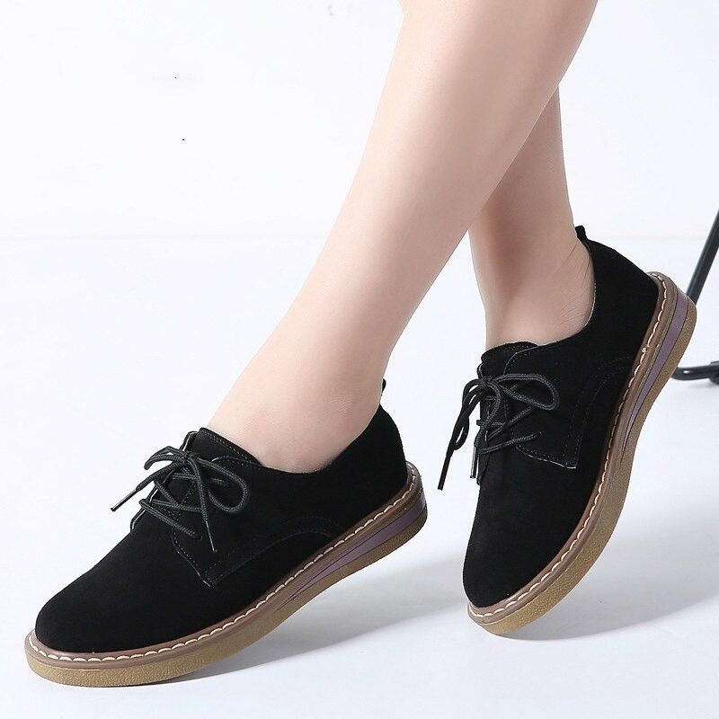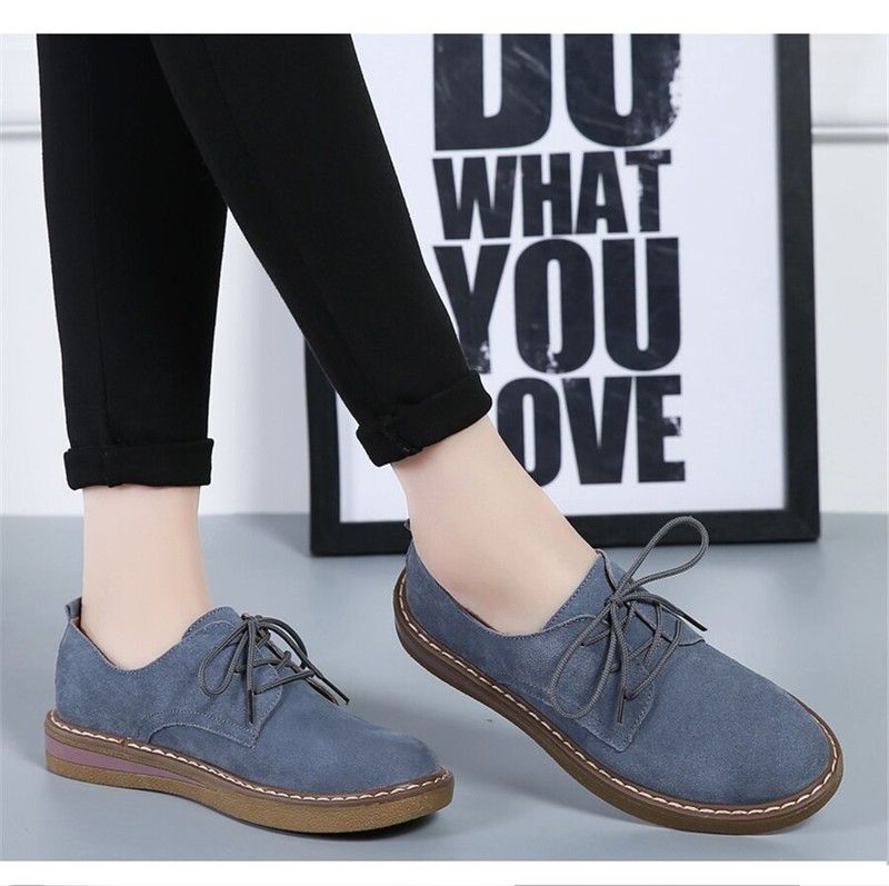 Baskets En Cuir Suédé Pour Femmes, Chaussures De Bateau À Bout Rond, Mocassins Plats Oxford Pour Femmes Printemps Chaussures Plates, À Lacets