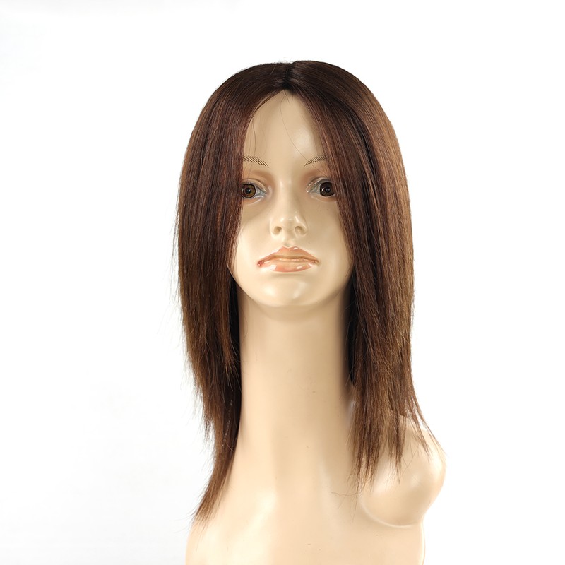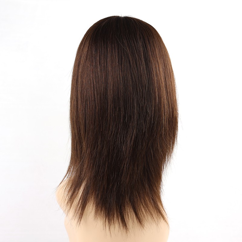 Perruques brésiliennes 100% naturelles Remy lisses avec raie au milieu, cheveux humains longs de 12 pouces avec couches, couleur marron, à la mode