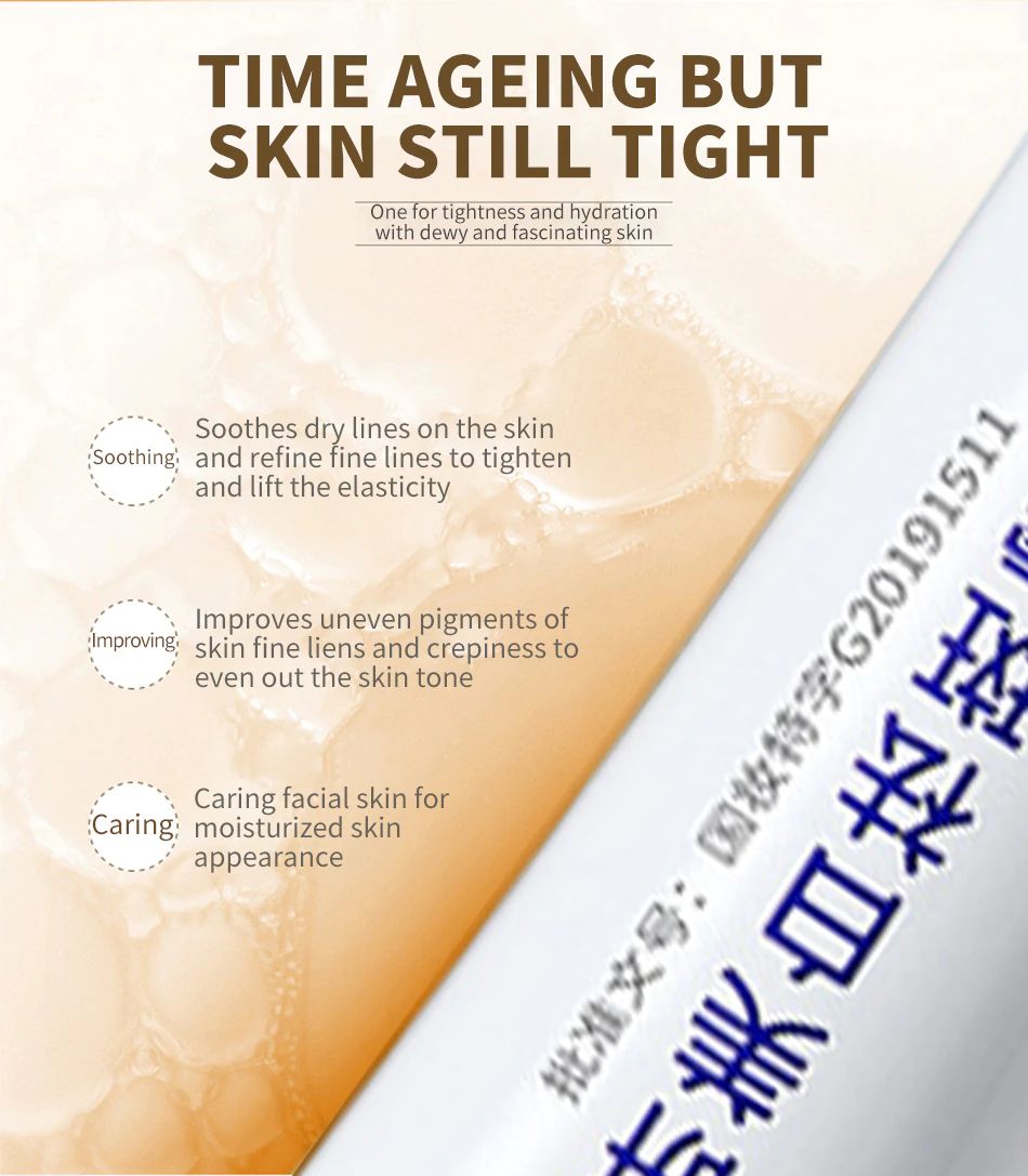Affiner les plis nasolabiaux, améliorer la compacité de la peau, hydrater et apaiser efficacement la peau sèche pour nourrir en douceur la peau endommagée, hydrater et apaiser efficacement la peau sèche pour nourrir en douceur la peau endommagée, la gomme xanthane. Contient des ingrédients qui unifie et éclaircit le teint, fournit à la peau beaucoup d'hydratation pour garder votre peau souple toute la journée.