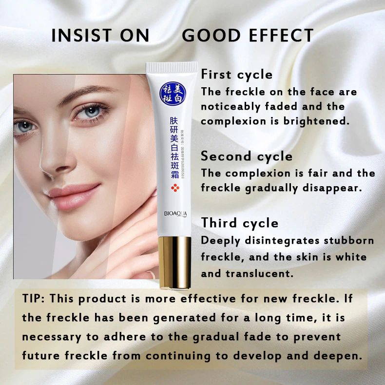 Conseil: ce produit est plus efficace pour les nouvelles taches de rousseur. Si la tache de rousseur est générée depuis longtemps, il est nécessaire d'adhérer à la décoloration progressive pour empêcher les taches de rousseur futures de continuer à se développer et à s'approfondir.
