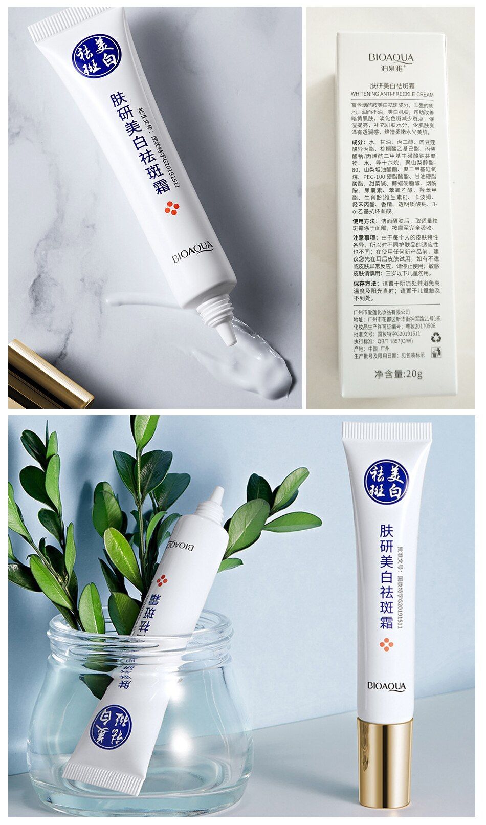 L'humidité et les ingrédients nourrissants peuvent être absorbés rapidement avec une grande expérience, la crème blanchissante peut être absorbée rapidement par la peau et aucun résidu à la surface de la peau.