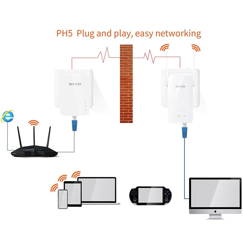 Tenda – Adaptateur De Ligne Powerline Sans Fil Ph5 (Pa3 + P3), 1000Mbps, Extension Wifi Plc Ethernet Plug And Play Homeplug Av2, Version Chinoise