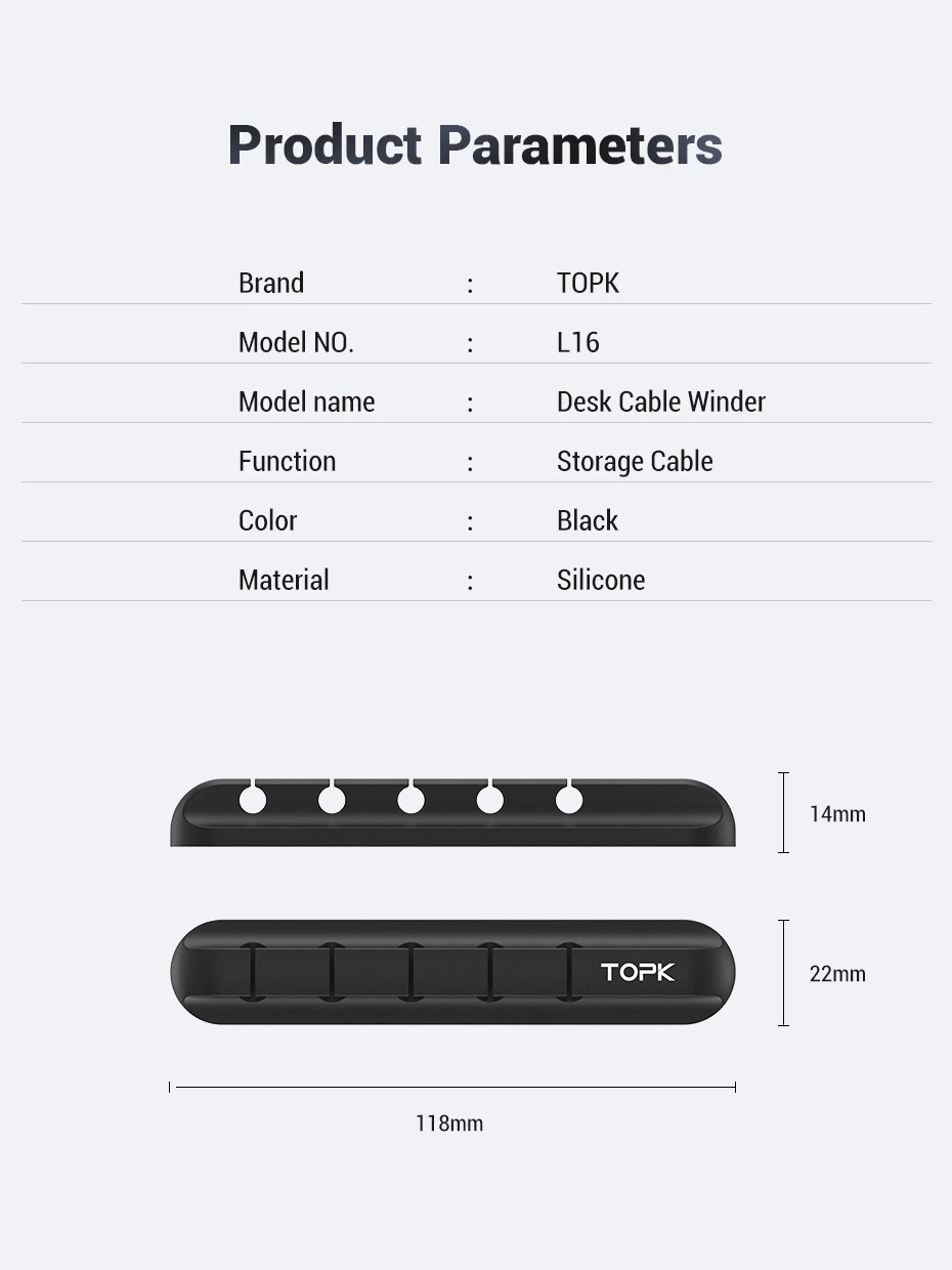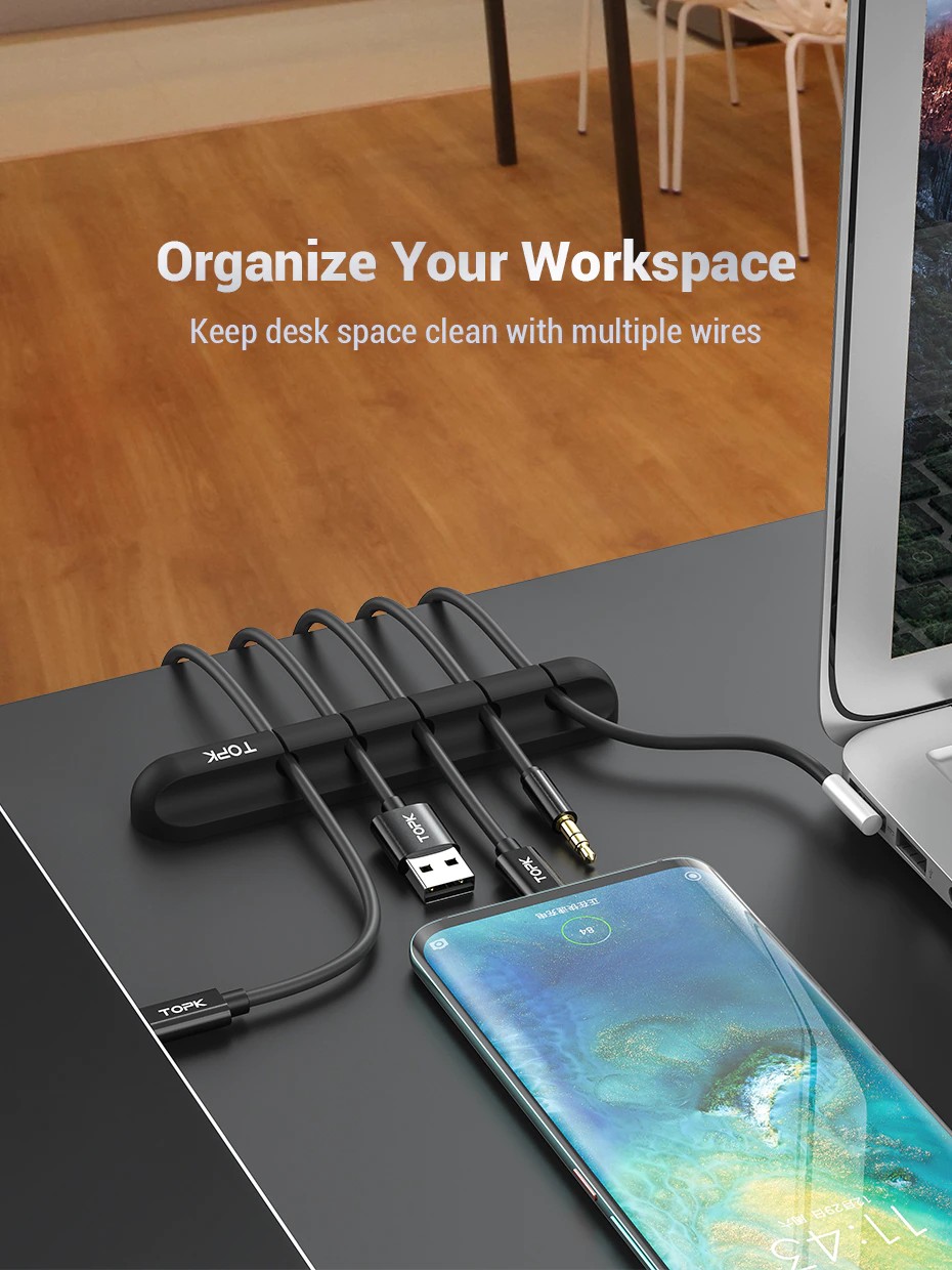 Topk – Enrouleur De Câble Usb En Silicone L16, Organisateur De Câbles De Bureau, Clips Polyvalents, Protection Pour Écouteurs Filaires
