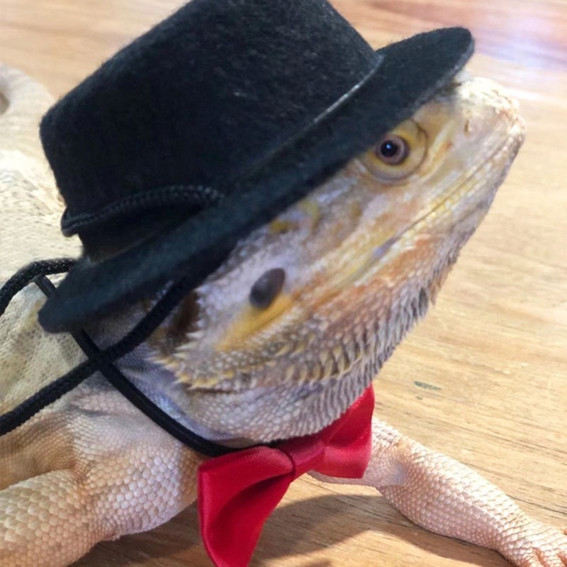 Chapeau À Corde De Traction En Cuir Souple, Avec Nœud Papillon, Pour Reptile Dragon Barbu Laisse Costume Fournitures Pour Animaux De Compagnie, Pour Amphibiens