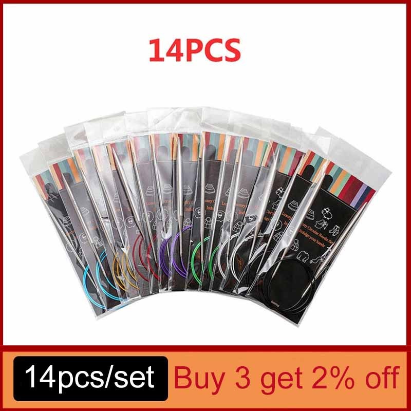 Ensemble D'Aiguilles À Tricoter Circulaires, Tube En Acier Inoxydable, 2.25-10Mm 14 Tailles 40-120Cm, 12 Aiguilles À Coudre Pour Tissage Diy