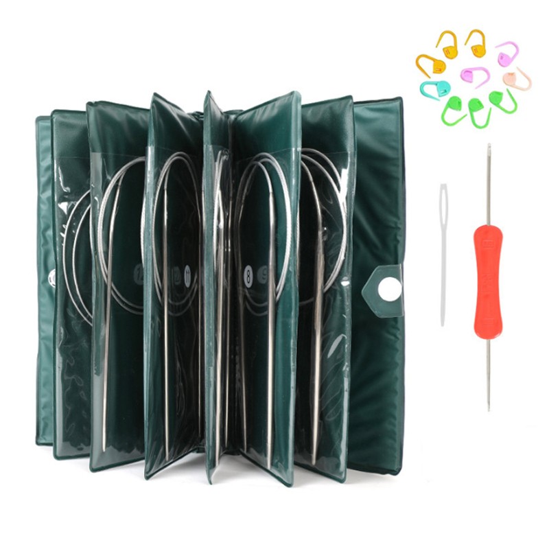 Ensemble d'aiguilles à tricoter circulaires en acier inoxydable 11 pièces/ensemble