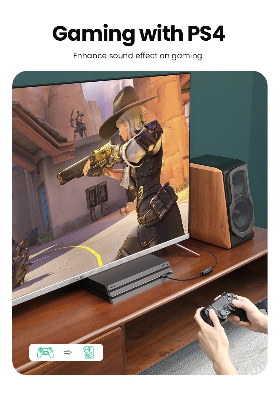 Ugreen – Carte Son Externe 3.5Mm, Adaptateur Usb Vers Microphone, Haut-Parleur Interface Audio Pour Ps4, Ordinateur Portable