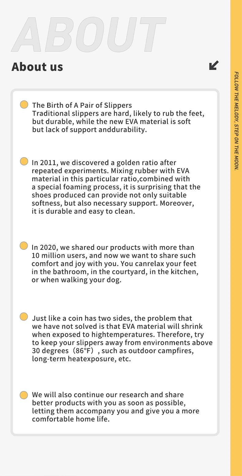 Pour les pantoufles EVA, évitez les températures élevées et l'exposition au soleil pendant l'utilisation quotidienne ou après le lavage.