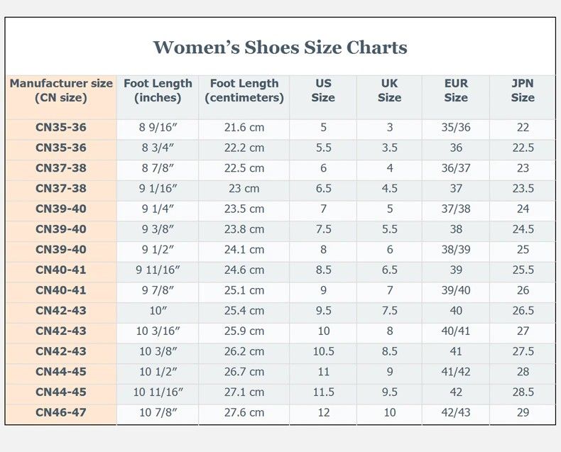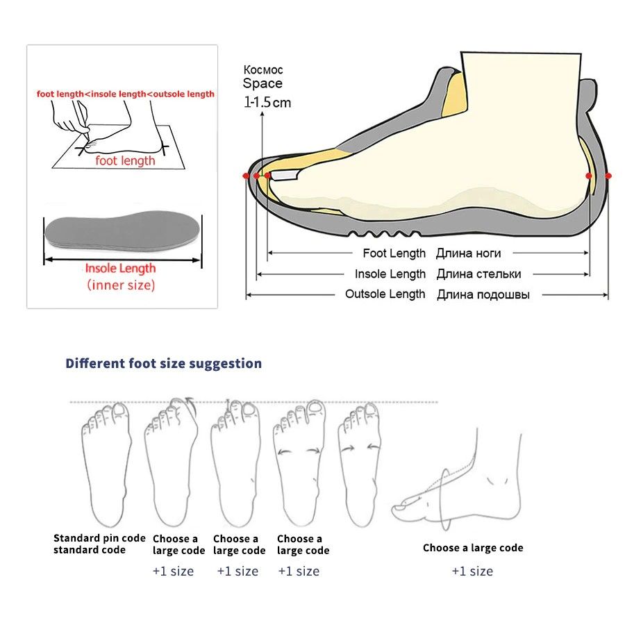 Par exemple, si la longueur de votre pied (du talon aux orteils) est de 230mm, veuillez choisir la taille de chaussures CN37-38 dans ce modèle.