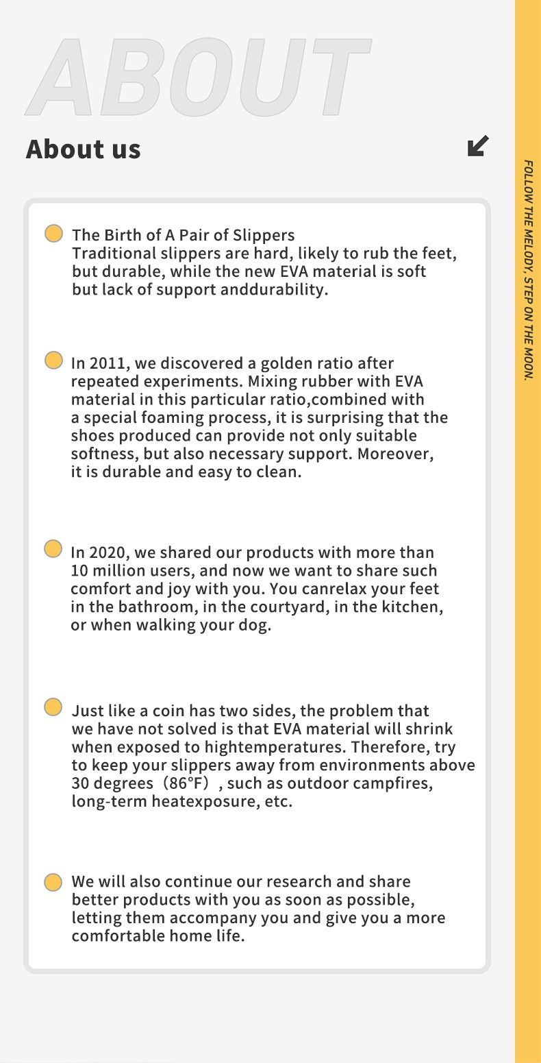 Pour les pantoufles EVA, évitez les températures élevées et l'exposition au soleil pendant l'utilisation quotidienne ou après le lavage.