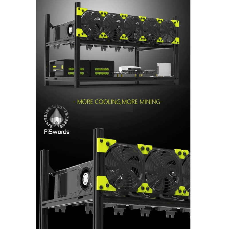 Conception empilable en plein air, parfaite pour tout type d'extraction de GPU scrypt tel que Litecoin, Dogecoin, Earthcoin, etc. Également idéal pour les ASICs de Bitcoin.