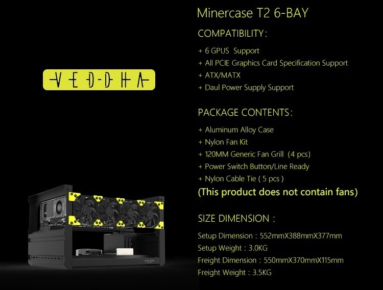 Plate-Forme De Minage À Cadre En Aluminium, 6 Gpu Veddha Boîtier À Ciel Ouvert, Superposable Encadrement Eth Pour Ordinateur Kit De Mining De Bitcoin, Ethereum Non Assemblé
