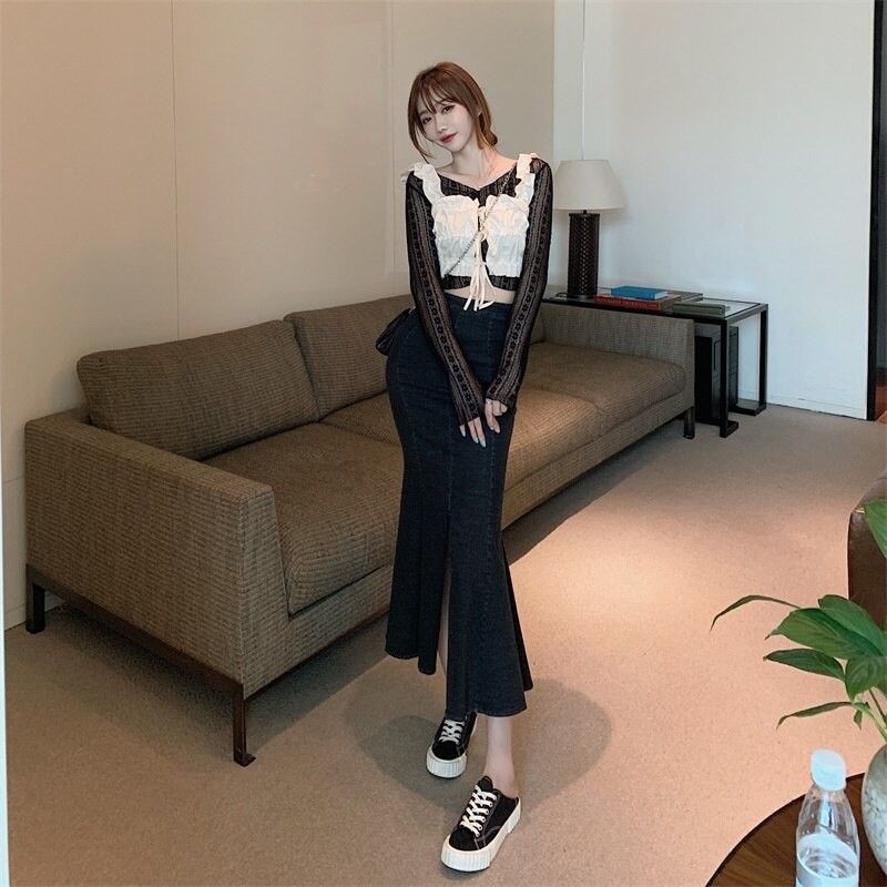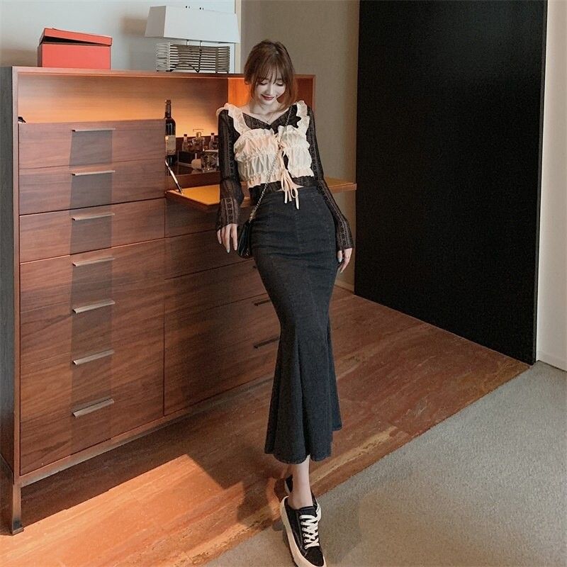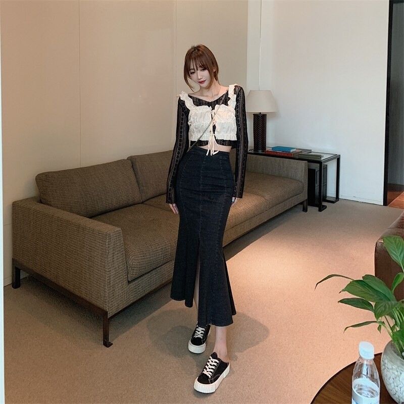 Jupe Sirène En Denim Pour Femmes, Vintage, Slim Taille Haute Fendue Mi-Longue Sac De Hanche Jupe Dame Décontractée Grande Taille, Mode