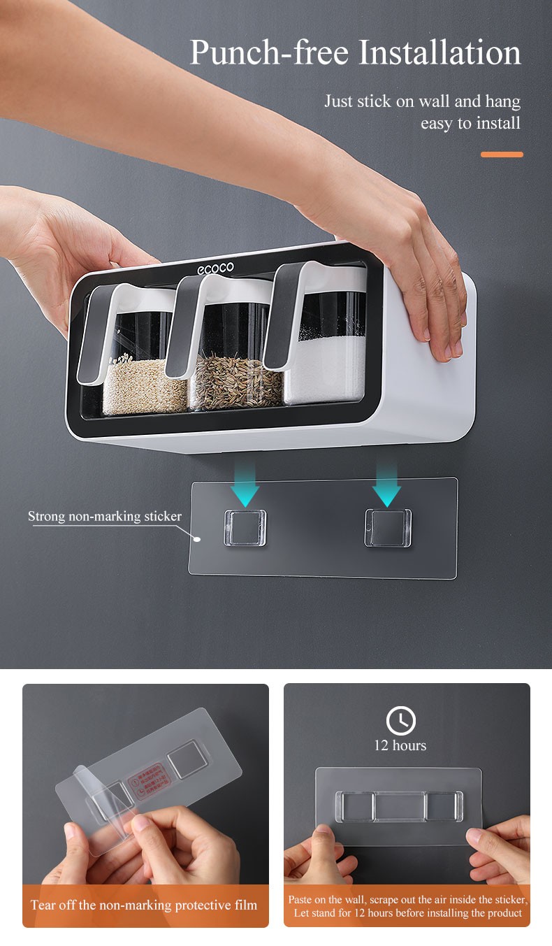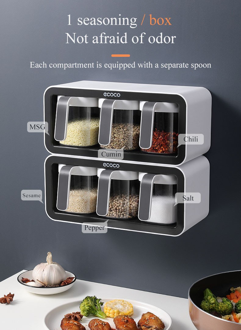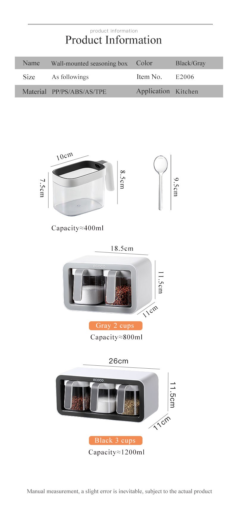 Wall Mount Spice Rack Organizer Sugar Bowl Salt Shaker Seasoning Container Spice Boxes With Spoons Kitchen Supplies Storage Set