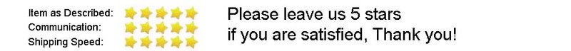Veuillez nous laisser 5 étoiles pour nous encourager si vous êtes satisfait de nos articles. Veuillez nous contacter si vous n'êtes pas satisfait, nous vous offrirons le meilleur service jusqu'à ce que vous soyez satisfait! ![]()