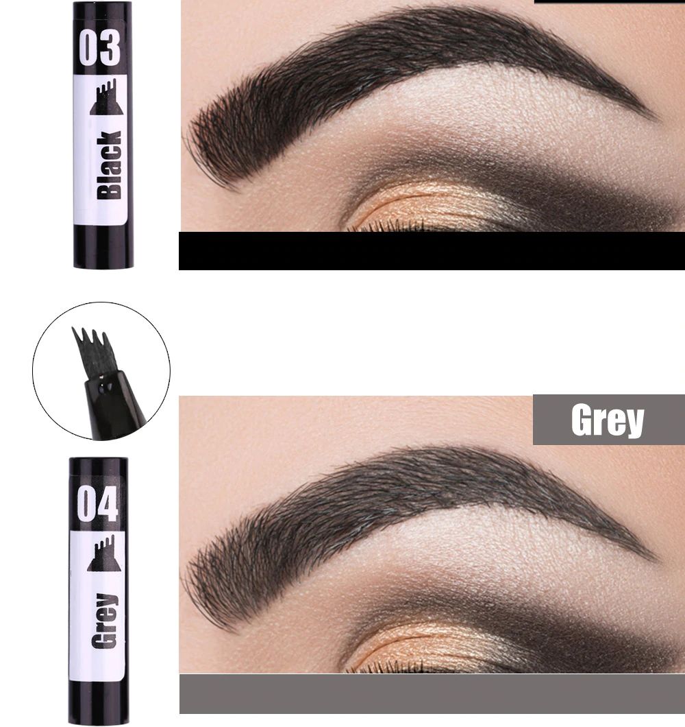 Crayon À Sourcils Naturel Imperméable, Quatre Griffes, Teinte Maquillage Brosse Cosmétiques Trois Couleurs Stylo Noir Brun Gris ,