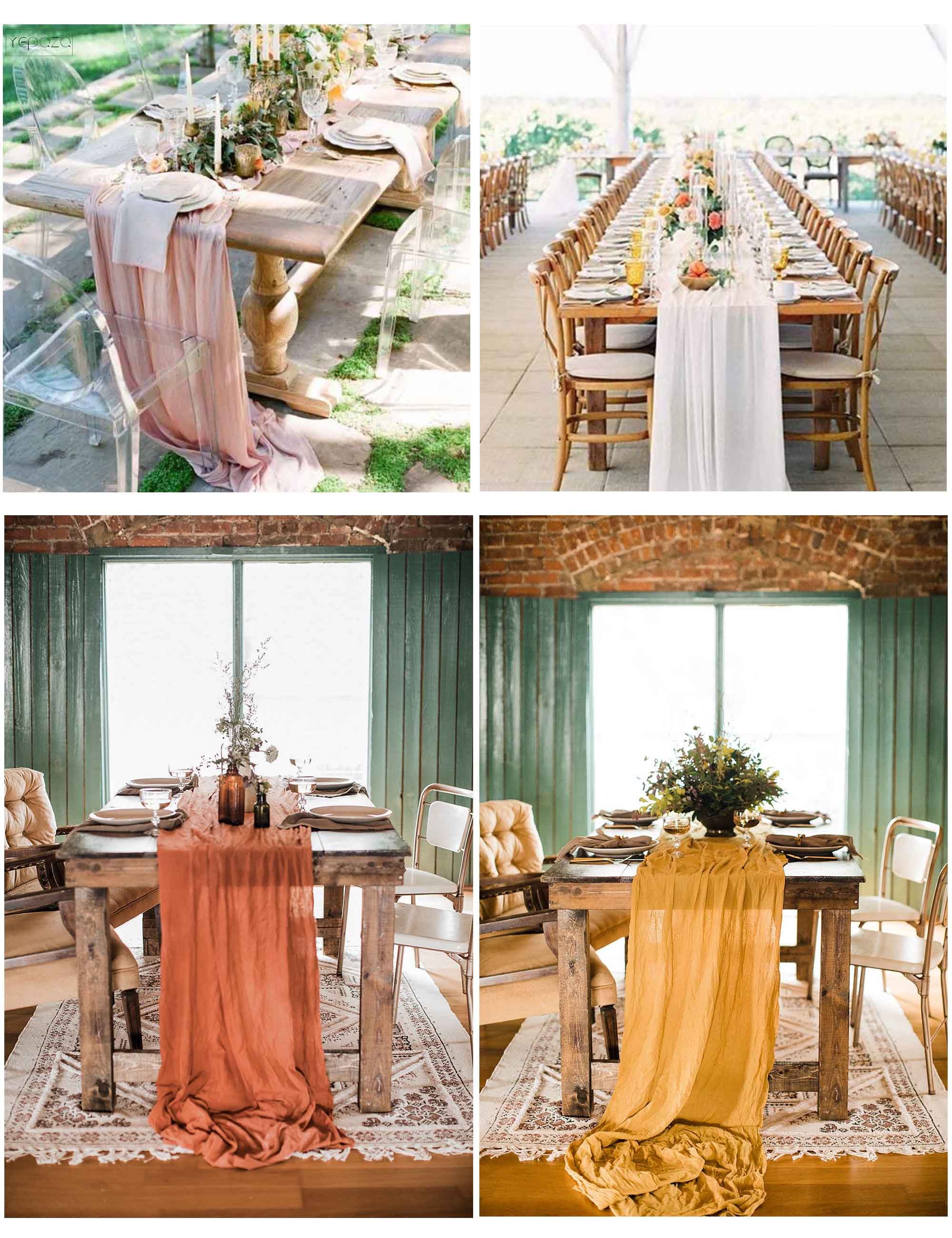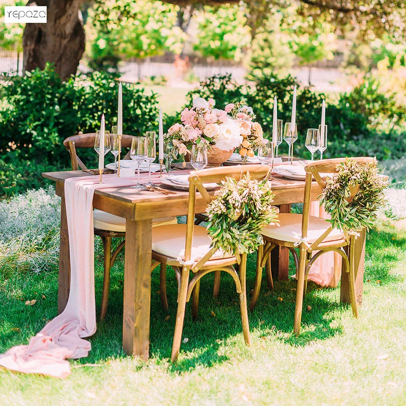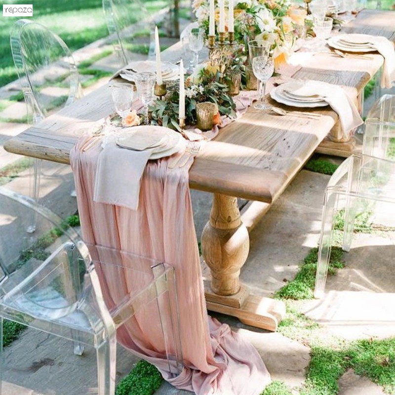 Chemin De Table En Gaze Rose De 60X400 Cm, Serviettes, Bannière Fête, Décoration De Mariage Personnalisée