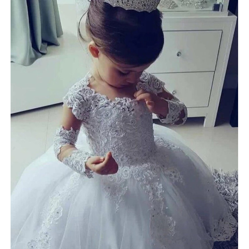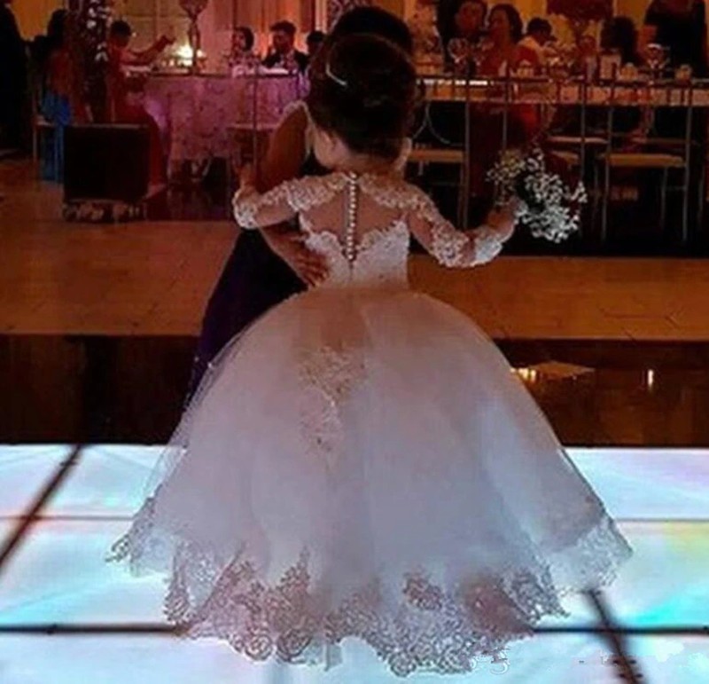 Robes De Mariage À Fleurs Blanches Pour Filles, En Tulle, En Dentelle Demi-Manches, Robes De Fête De Première Communion Pour Enfants