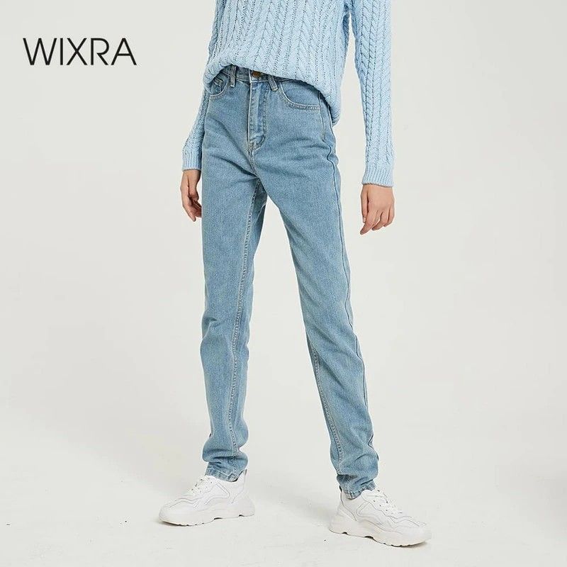 Wixra – Jean De Base Souple Pour Femme, Pantalon Long En Denim, Coupe Droite Taille Haute, Ça existe En Grandes Tailles