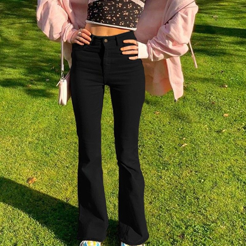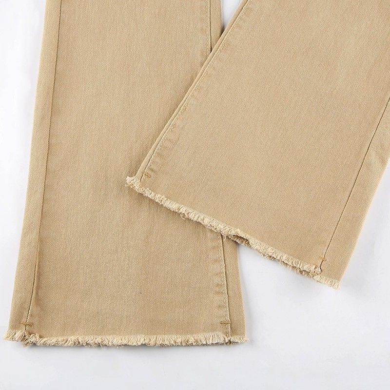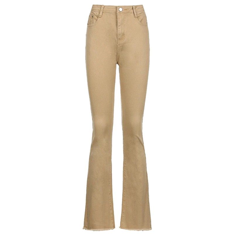 Jean Évasé Taille Haute Pour Femme, Pantalon Évasé, Kaki Noir Marron, Vêtement