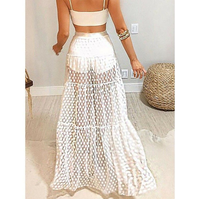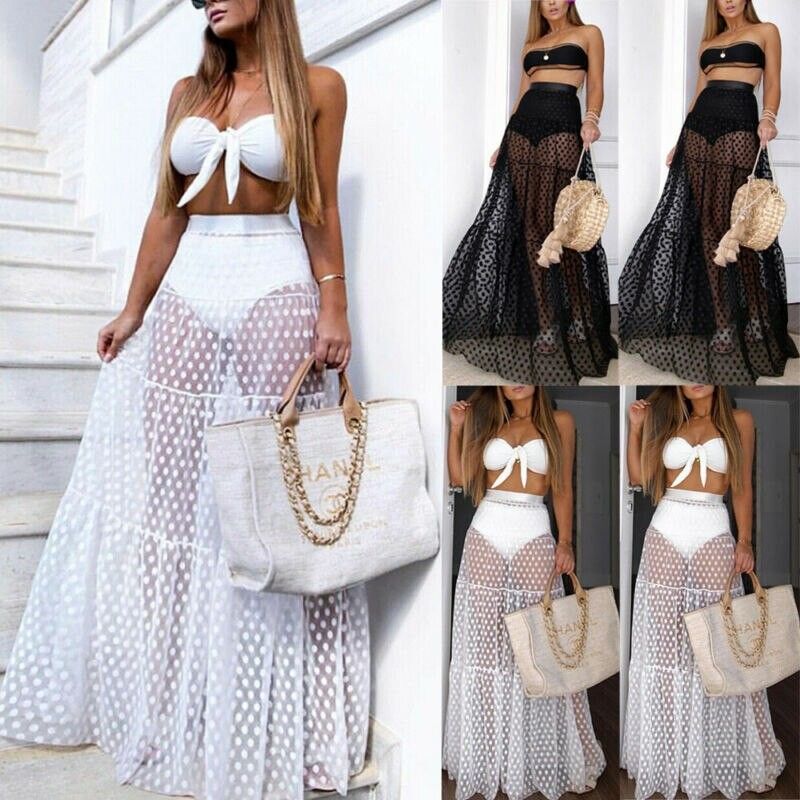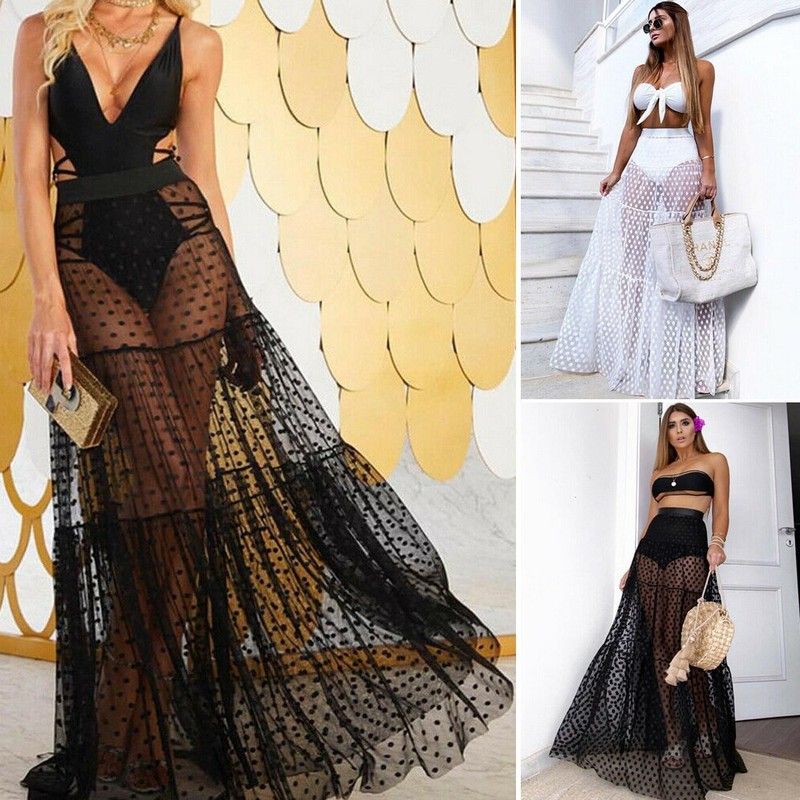 Jupe De Plage En Tulle Pour Femmes, Maxi, Transparente À Pois En Dentelle Sexy, À La Mode