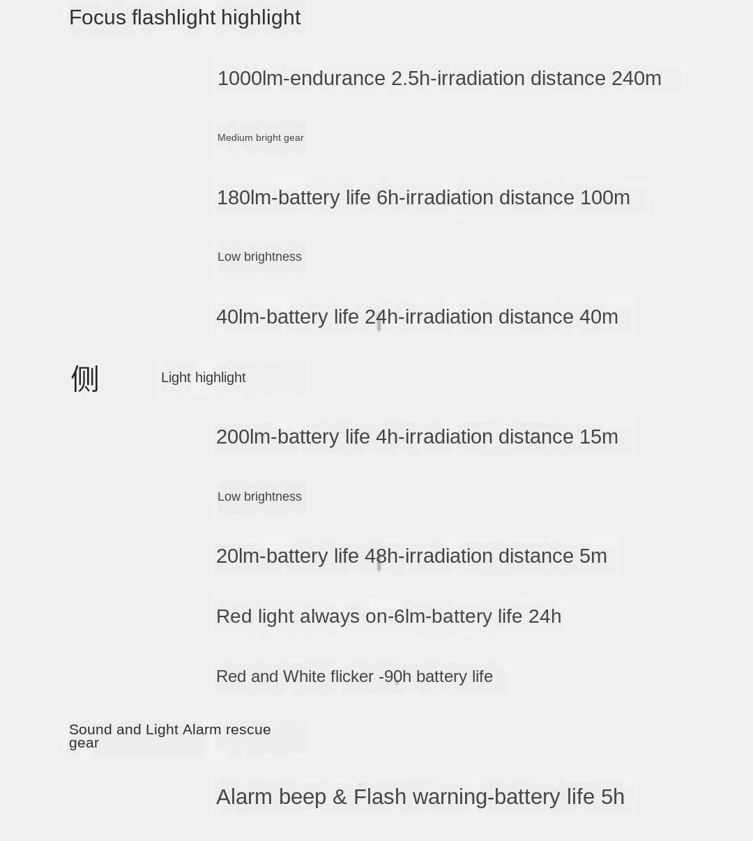 1000lm-temps d'endurance 2.5h-Distance d'irradiation 240m