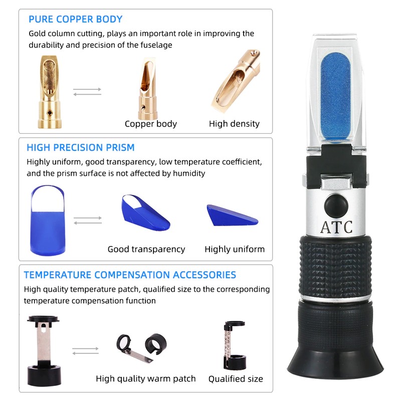 Yieryi – Réfractomètre Portable Pour Apiculture, 58 ~ 90% Brix 38 ~ 43 Be Baume Miel Vin Atc