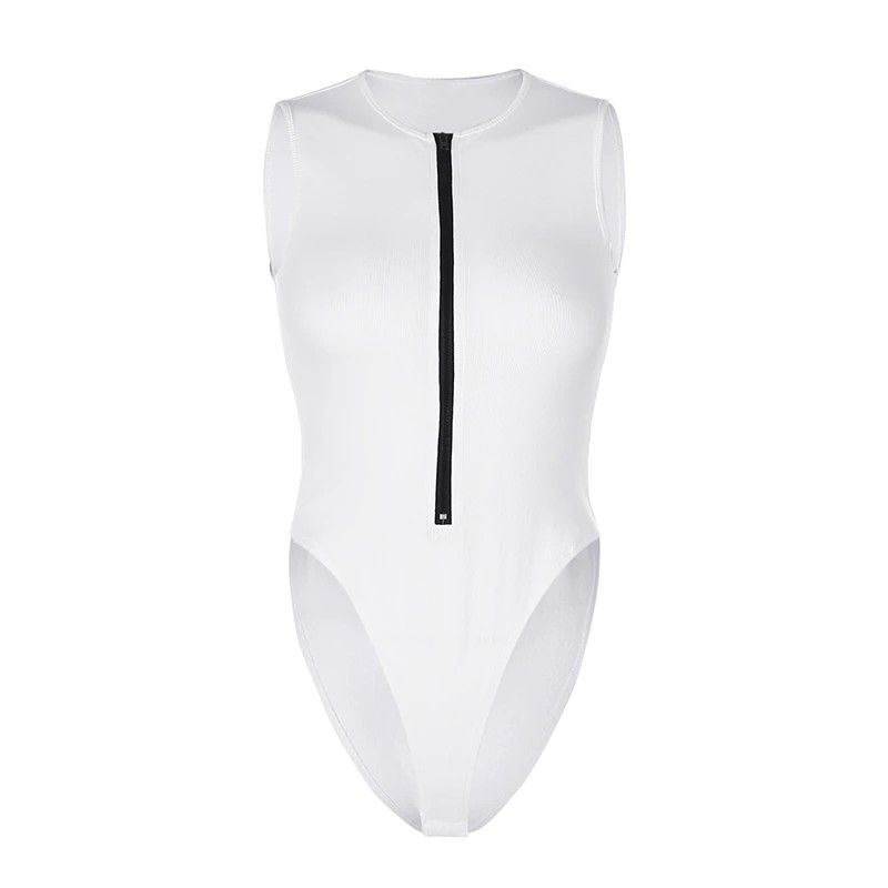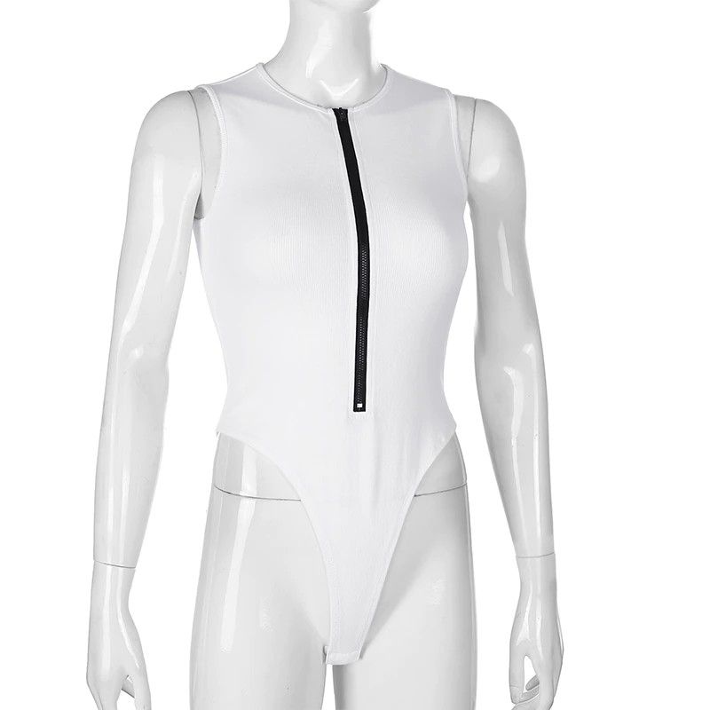 Body Sexy À Fermeture Éclair Pour Femme, Haut Basique Moulant Sans Manches, À La Mode Combinaison Une Pièce, Livraison Directe