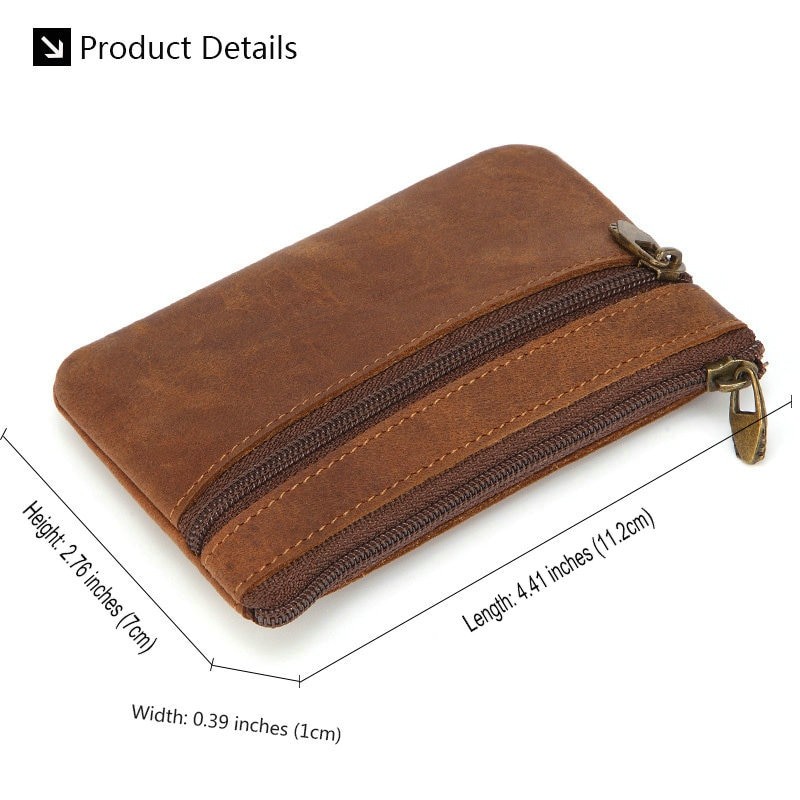 Genodern Vintage Horse Leather Men'S Coin Purse Genuine Leather Coin Wallet Retro Key Holder Small Money Bag