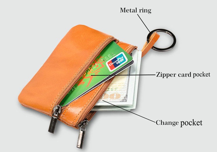Structure:2 zipper pocket for coins and bills,1 key rigng