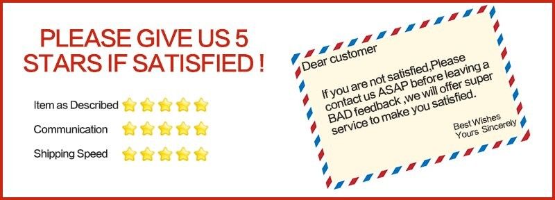 1. If you are satisfied with your order, please leave us all 5 stars including Item as Described,Communication and Shipping Speed.