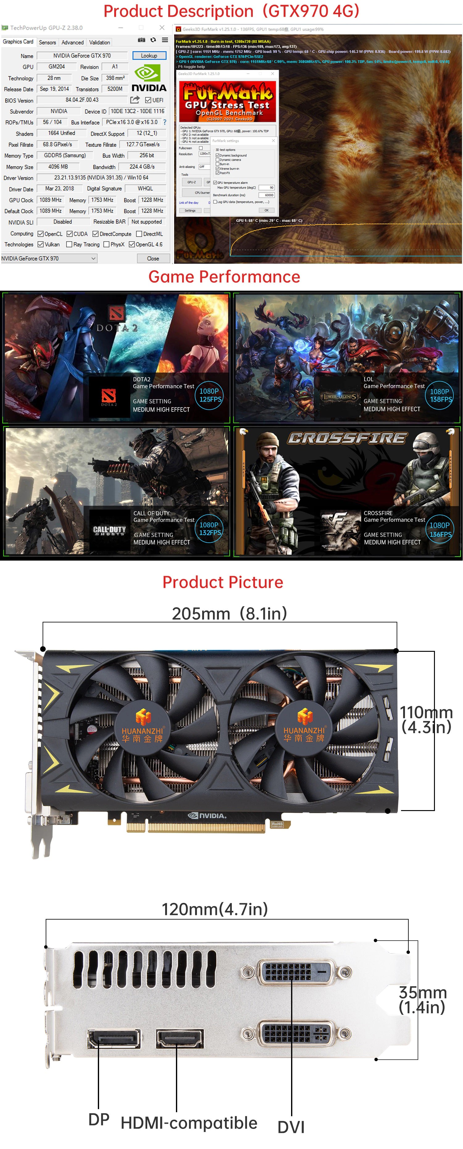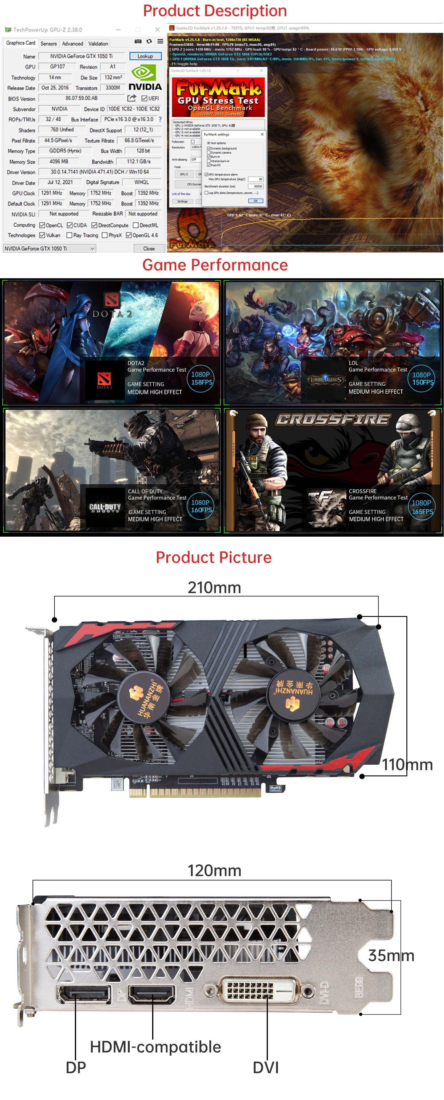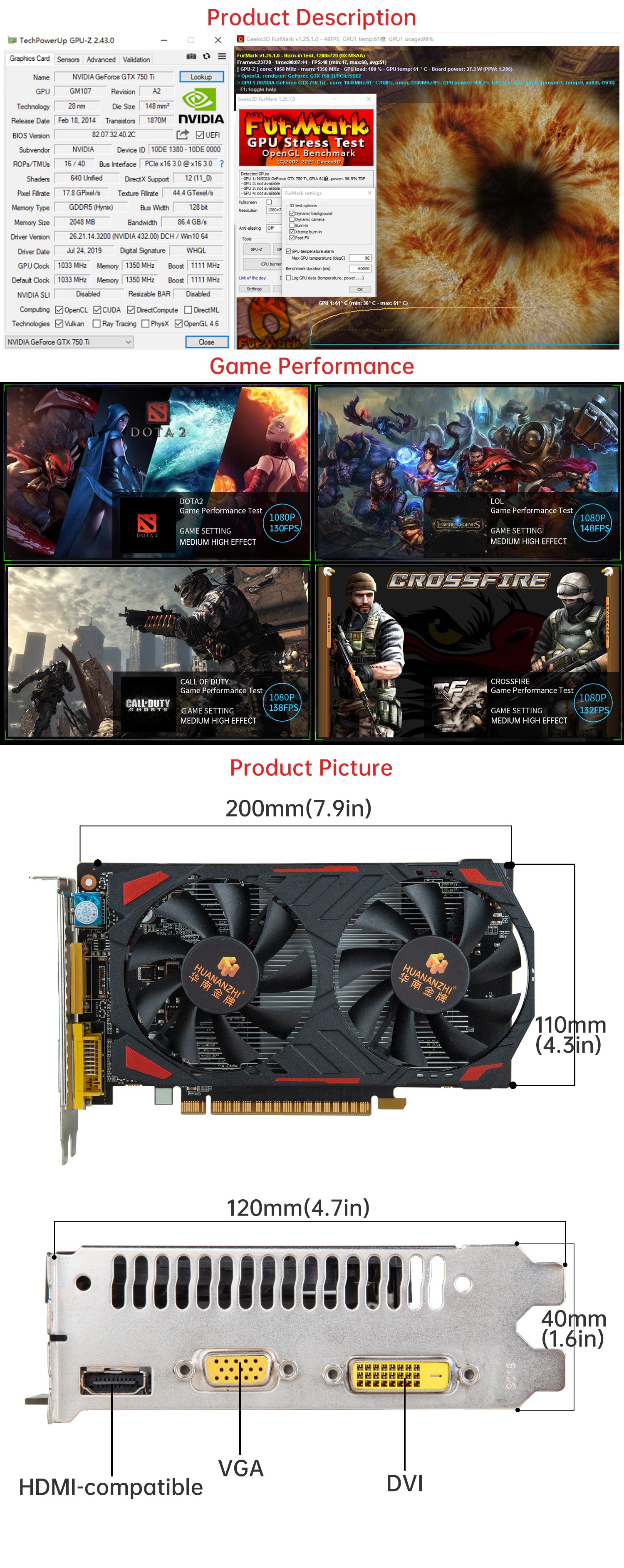 2.The parameters of different brands of Video Cards will be different, please refer to GPU-Z picture we placed for the specific data, each test data will have a maximum of 15% float, when you buy, we assume that you have approved the relevant data of this video card, mind please don't buy