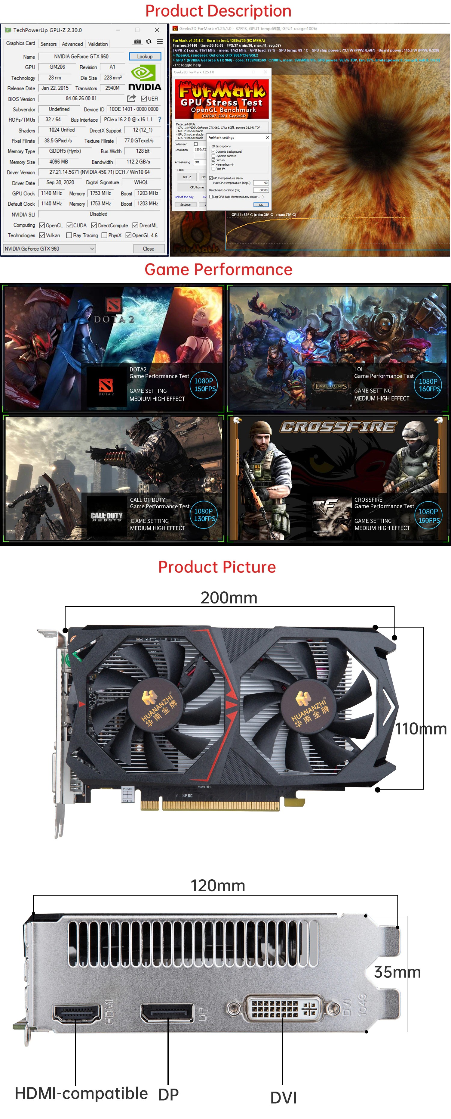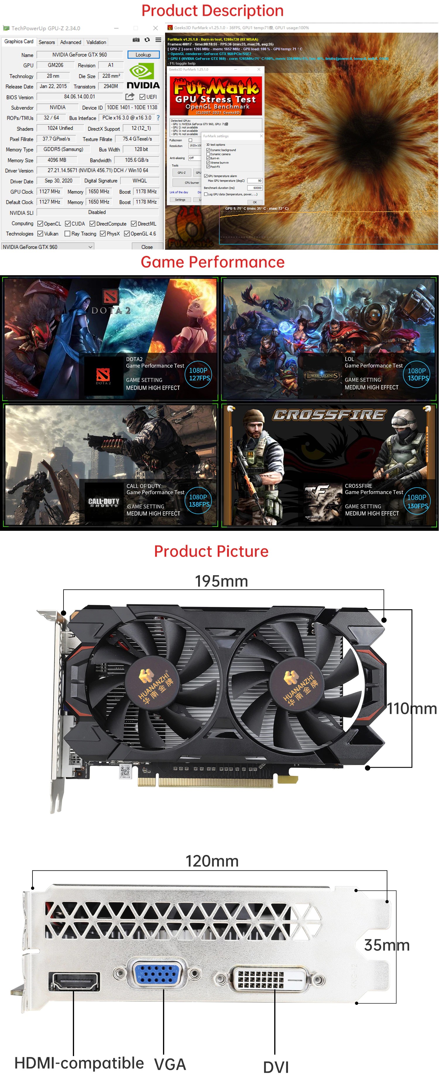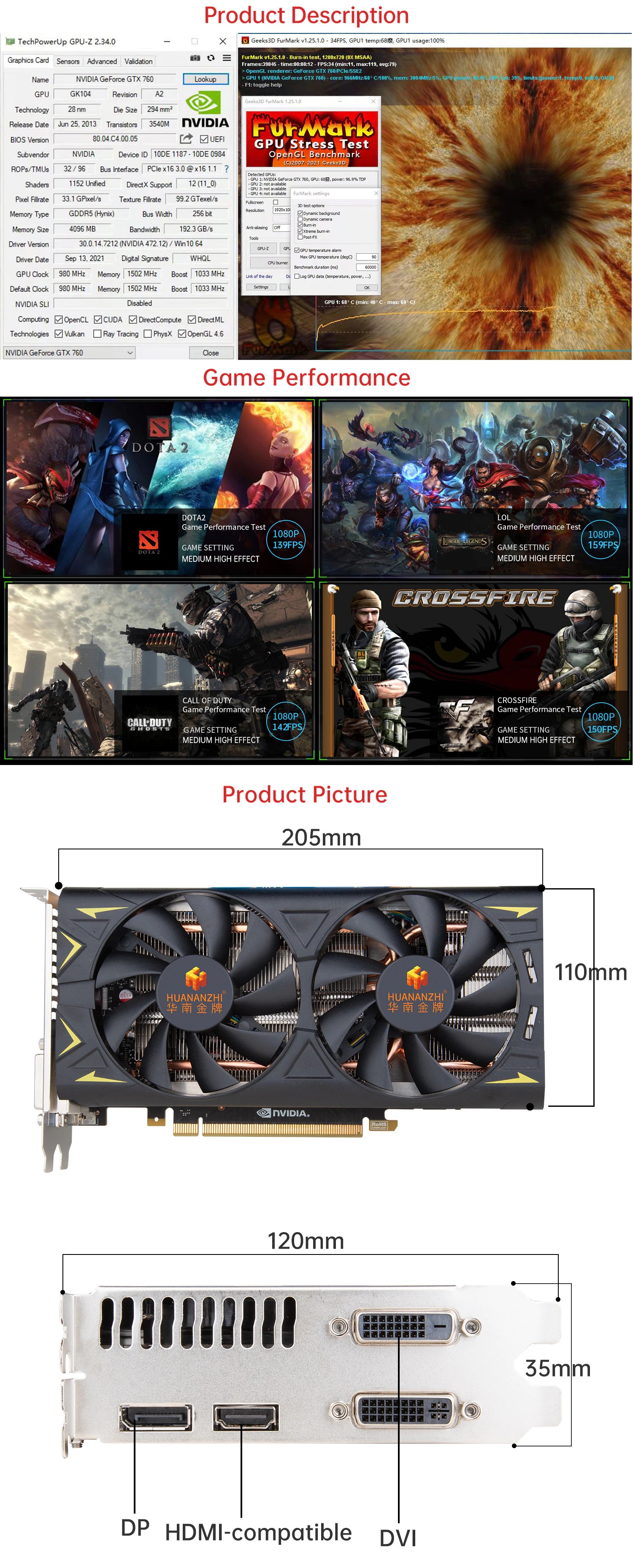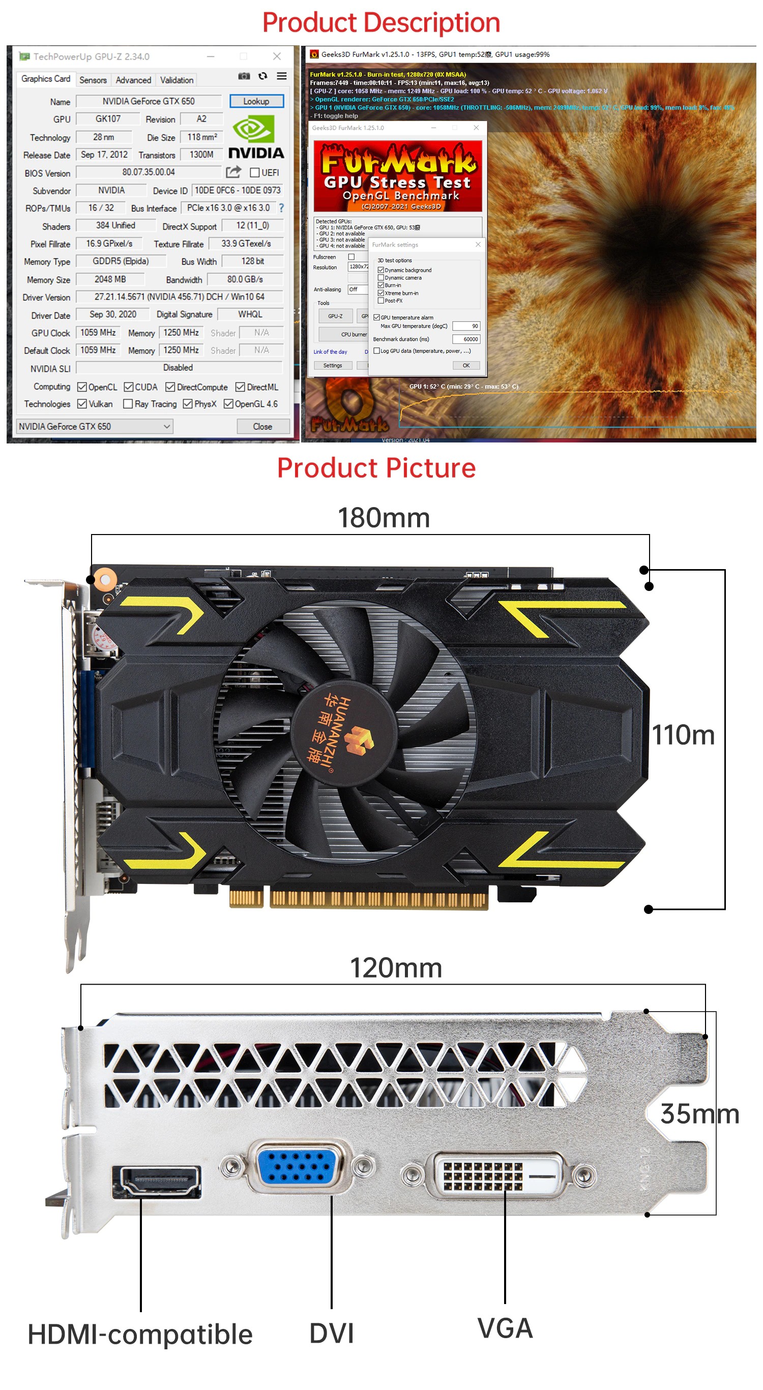 2.The parameters of different brands of Video Cards will be different, please refer to GPU-Z picture we placed for the specific data, each test data will have a maximum of 15% float, when you buy, we assume that you have approved the relevant data of this video card, mind please don't buy