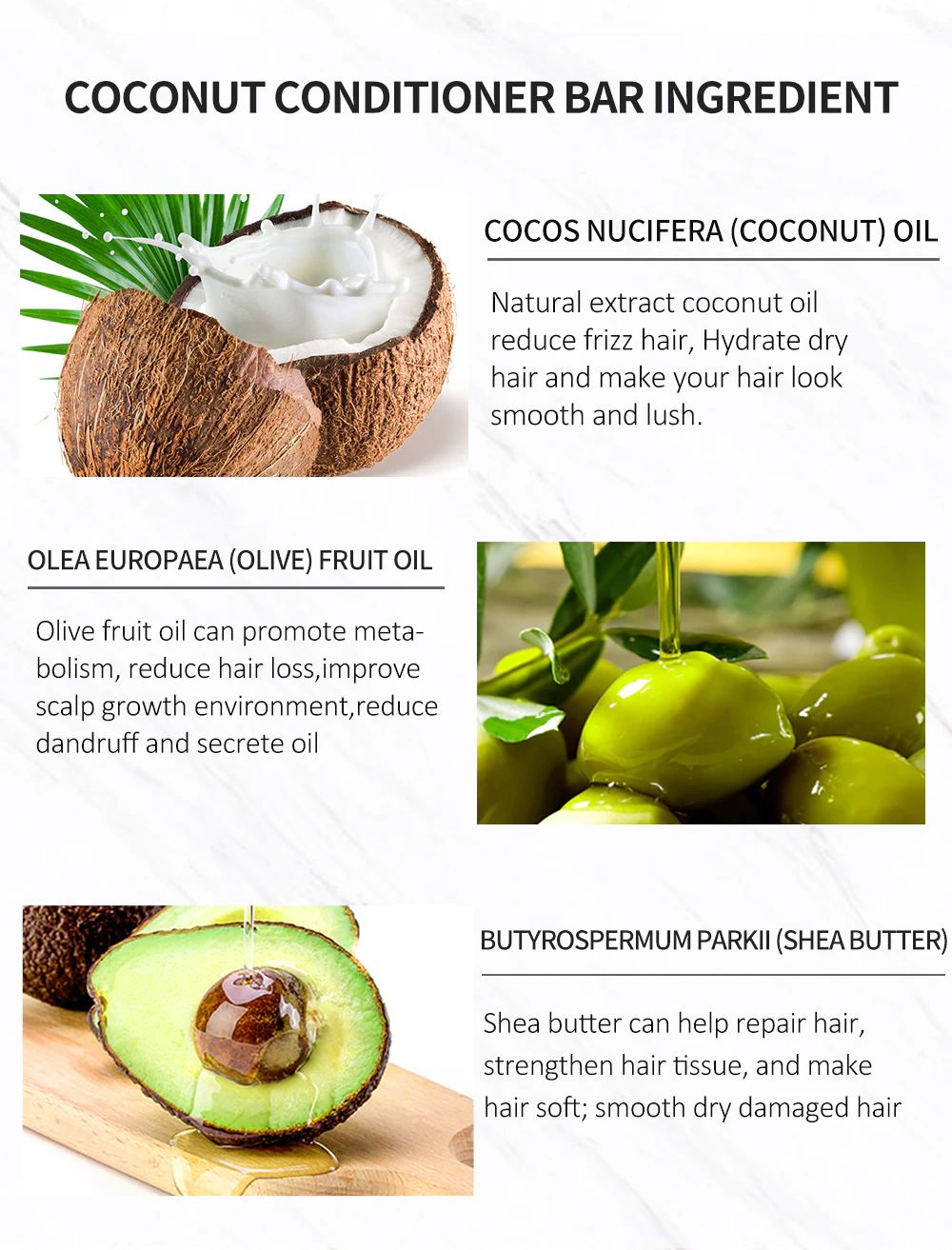 Hairinque Organic Handmade Coconut Conditioner Bar Solid Hair Conditioner Soap Deeply Hydrating For Dry & Damaged Hair Care