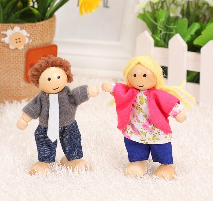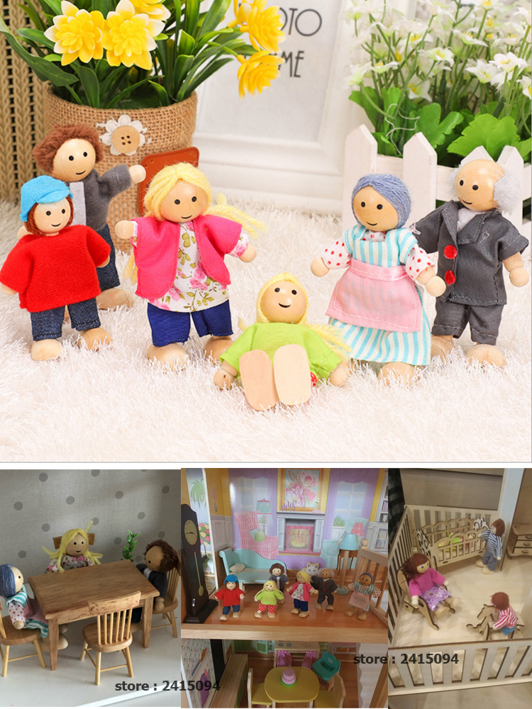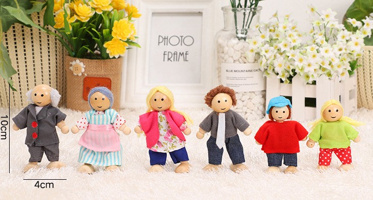 子供のためのミニチュア家族の人形,6人のためのミニチュア人形,木製の関節人形,子供のためのおもちゃ