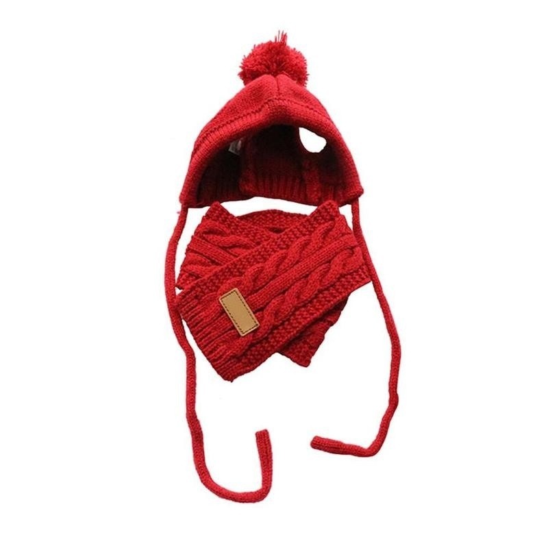 Hat For Dogs Winter Warm Stripes Hat+Scarf Puppy Teddy Costume Clothes Santa Dog Costumes