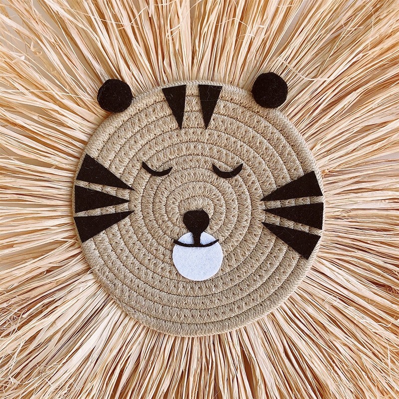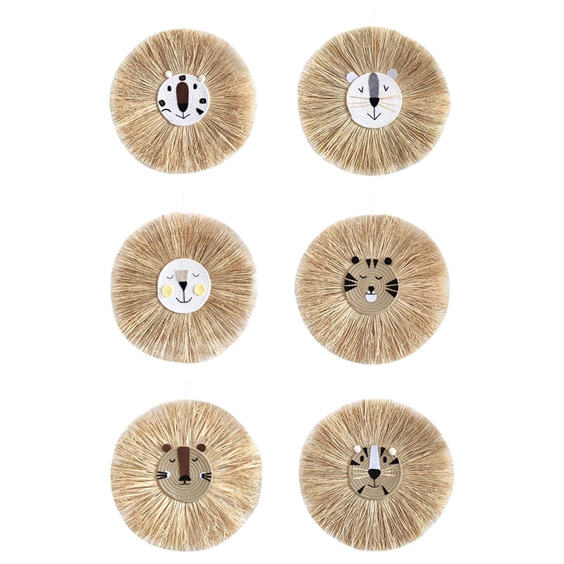 Home Decoration Tapestry Handwoven Cartoon Lion Hanging Decorations Cute Animal Head Ornament Children Room Wall Hanging