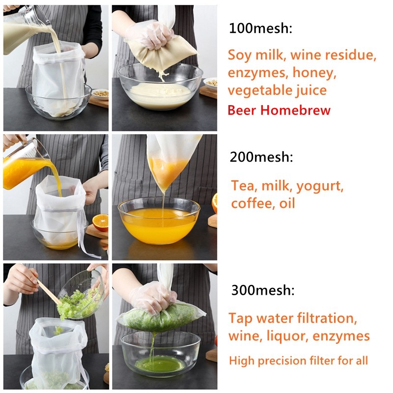 Homebrew Filter Bag For Brewing Reusable Food Filter Bags Strainer Fine Mesh Bag For Nut Juice Filters