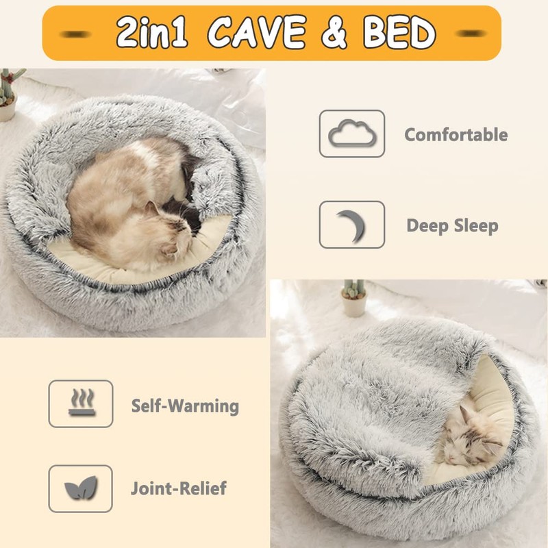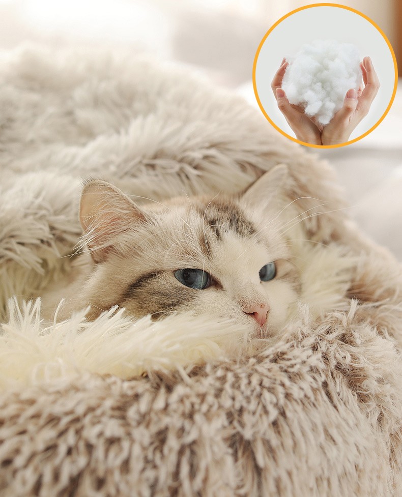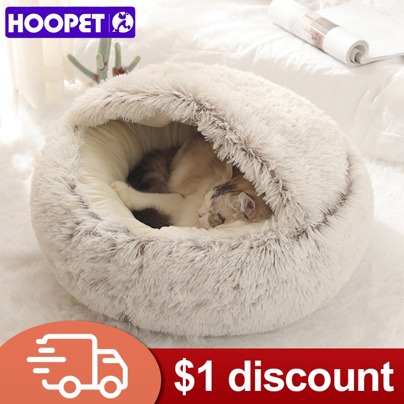 Hoopet New Style Pet Dog Cat Bed Round Plush Cat Warm Bed House Soft Long Plush For Small Dogs For Cats Nest 2 In 1 Cat Bed