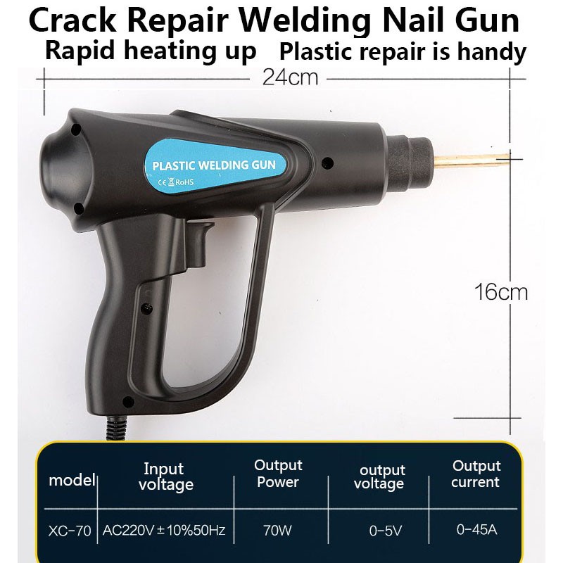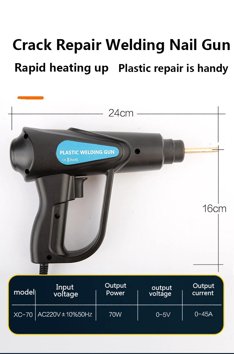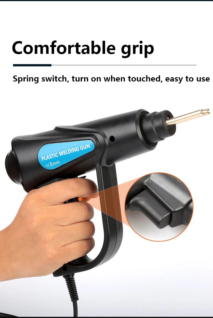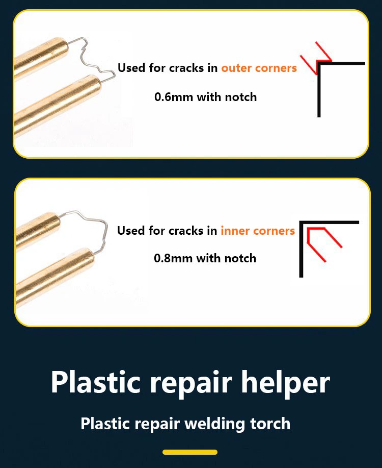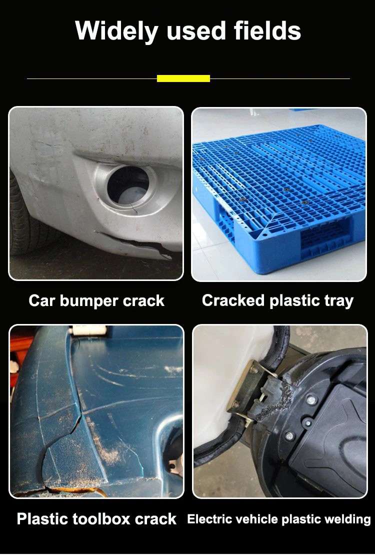 Repairs at least 98% of the plastics on the market. Perfect for repairing: bumper, dashboard, lamp holder, plastic ring, radiator, spoiler, handles, headlights, plastic wings, car and motorcycle plastic device, etc.