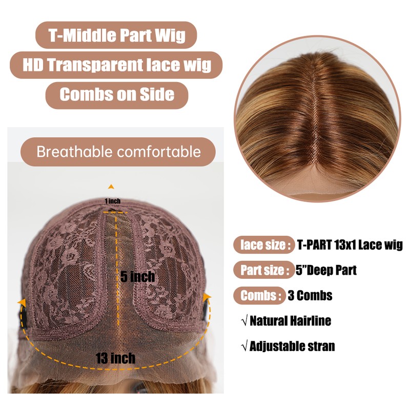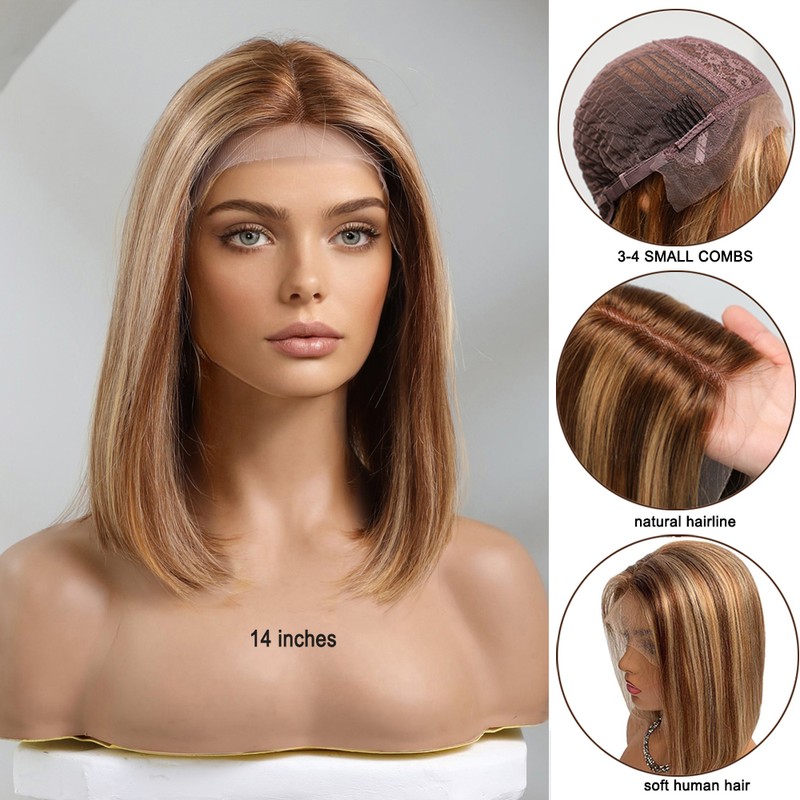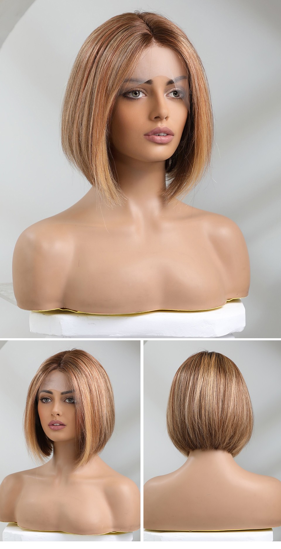 Human Wigs Short Straight Bob Wig For Women Brown Highlight Wig Women'S Medium Length T Part Lace Front Wig