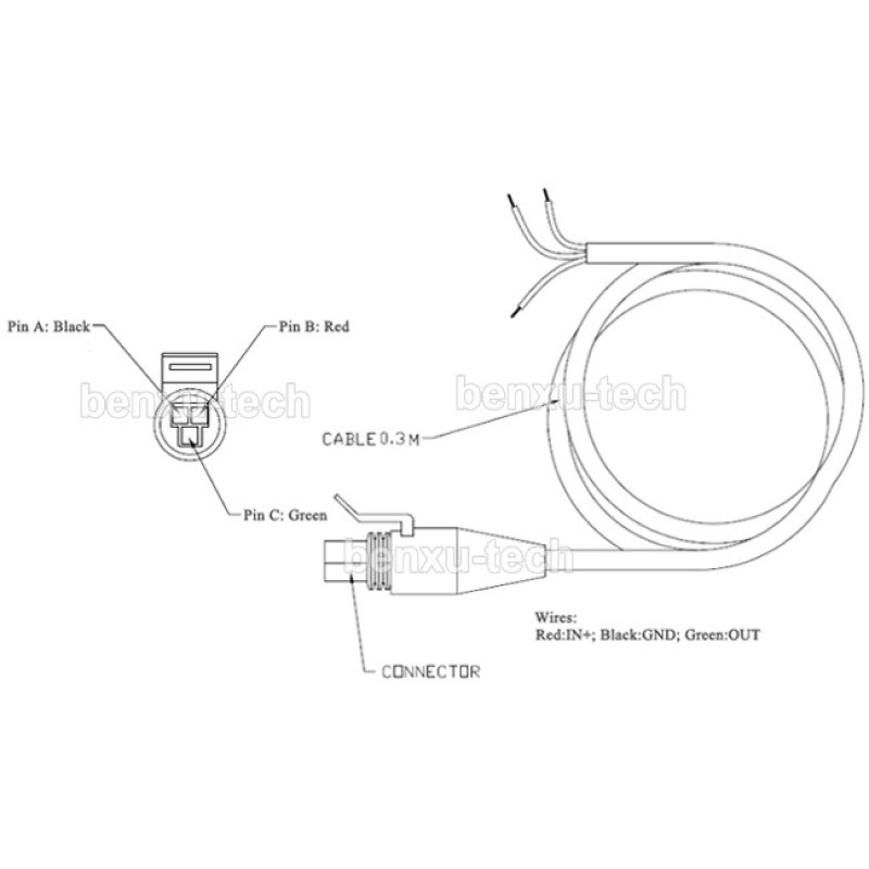Cablaggio | Rosso: IN +; Nero: GND; Verde: OUT |