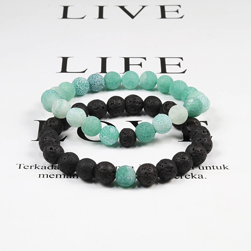 1-2Pcs Braccialetti Con Perline Braccialetti Set Pietra Lavica Naturale Coppie Distanza Energia Corda Elastica Uomo Donna Migliore Amico Regalo Gioielli